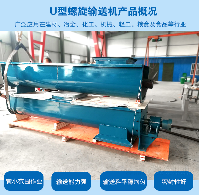 U型螺旋輸送機(jī)是螺旋輸送機(jī)的一種,適宜小范圍作業(yè)。U型螺旋輸送機(jī)因其輸送能力強(qiáng),輸送料平穩(wěn)均勻,不會(huì)造成揚(yáng)塵、不對周邊環(huán)境進(jìn)行污染,且能耗小,密封好,利屬于設(shè)備,近年來已經(jīng)被廣泛應(yīng)用在建材、冶金、化工、機(jī)械、輕工、糧食及食品等國民經(jīng)濟(jì)的很多領(lǐng)域。