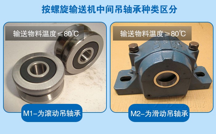 1、M1-為滾動(dòng)吊軸承,采用80000型密封軸承,軸蓋上另有防塵密封結(jié)構(gòu),密封效果好,吊軸壽命長。(常用在不易加油,不加油或油對物料有污染的地方,輸送物料溫度≤80℃)