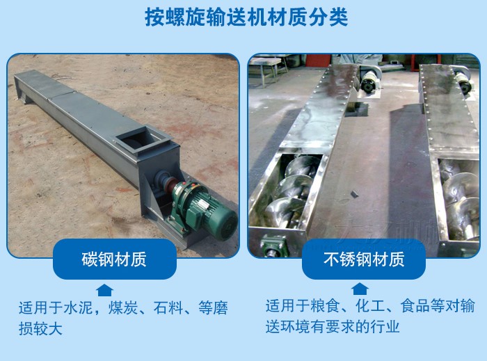 2、不銹鋼U型螺旋輸送機(jī)-主要適用于糧食、化工、食品等對輸送環(huán)境有要求的行業(yè),清潔度高,并且不會(huì)對物料產(chǎn)生污染,使用時(shí)間長,但是造價(jià)相對較高。