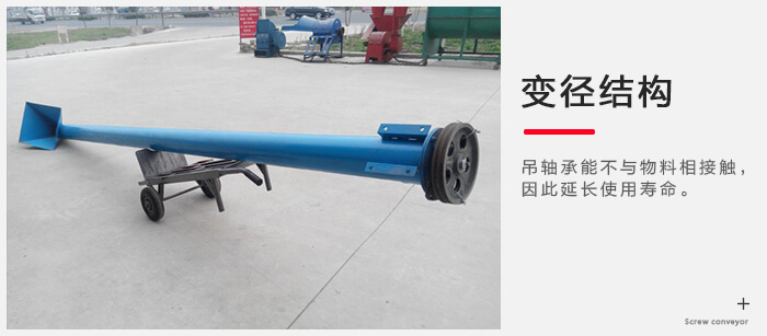 該輸送機(jī)是采用變徑結(jié)構(gòu),吊軸承能不與物料相接觸,因此它的壽命長(zhǎng)。