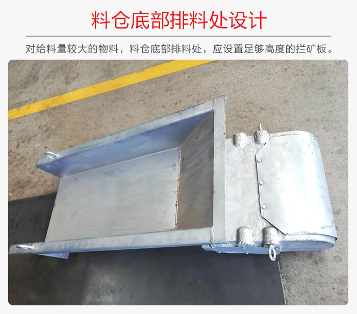 對給料量較大的物料,料倉底部排料處,應設置足夠高度的攔礦板; 為不影響給料機的性能,攔礦板不得固定在槽體上。