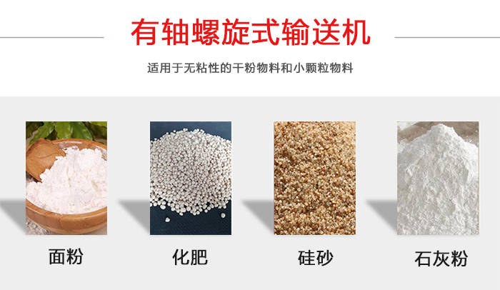 有軸螺旋式輸送機適用于無粘性的干粉物料和小顆粒物料.(例如:水泥、粉煤灰、石灰、糧等)而無軸螺旋式輸送機適合輸送機由粘性的和易纏繞的物料。(例如:污泥、生物質、垃圾等)