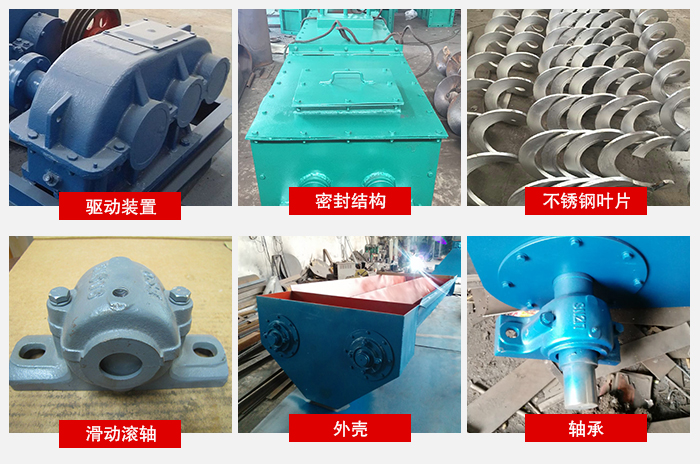粉末螺旋輸送機本體由頭部軸承、尾部軸承、懸掛軸承、螺旋、機殼、蓋板及底座等組成。 驅(qū)動裝置由電動機、減速器、聯(lián)軸器及底座所組成。