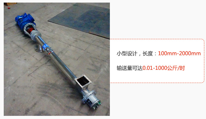 1、小型號設(shè)計,長度100mm-2000mm,輸送量可達0.01-1000公斤/時;